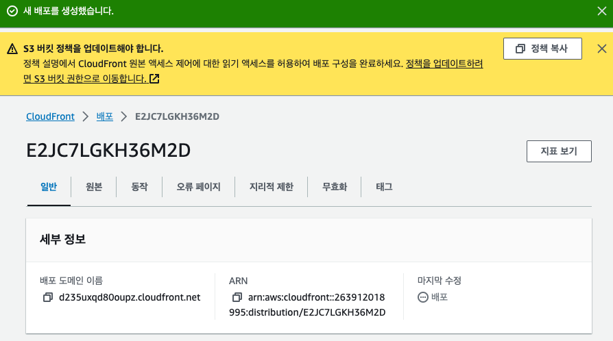 # CloudFront 배포 ID : E2JC7LGKH36M2D